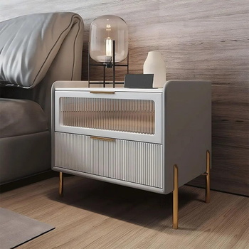 Comodino elegante in metallo bianco comodino moderno di lusso con 2 cassetti per camera da letto